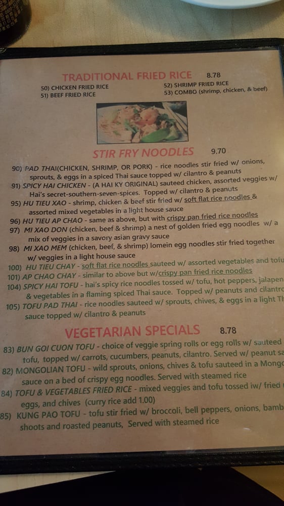 Introducing Hai Ky, a Vietnamese restaurant in Austin, TX, known for its consistent quality and flavors. This casual spot offers a variety of options suitable for vegans and vegetarians. Customers rave about the vermicelli bowl and egg rolls as standout dishes. The menu also includes popular items like shrimp spring rolls, Pho, stir-fried hong kong noodles, and tofu & veggies fried rice. Although some reviewers note minor issues with the ambiance and service, the delicious food keeps them coming back. The vegetable pho and tofu dishes are particularly praised for their tasty broths and generous portions. If you're craving authentic Vietnamese cuisine, Hai Ky is a must-visit with its friendly service and flavorful dishes.